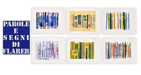 Cartella contenente 5 poesie e 6 serigrafie di Franco Flarer, ciascuna recante firma e numerazione (Esemplari 43/90) a biro al fronte