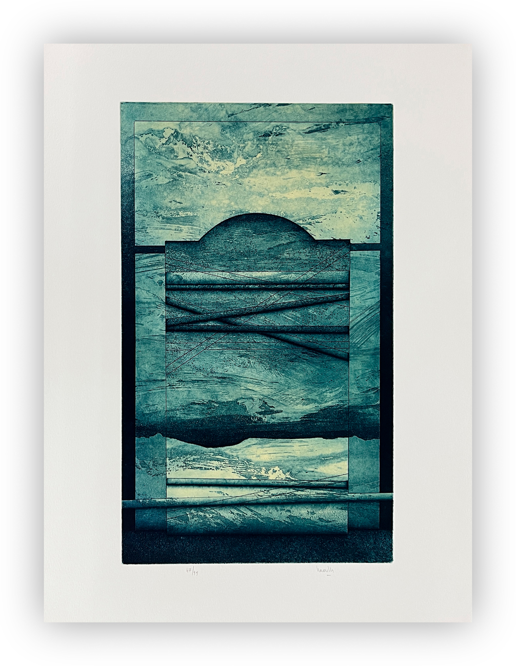 Edizione d'arte contenente una poesia di Paolo Lanaro illustrata da un'incisione di Silvio Lacasella recante firma e numerazione (Esemplare 47/99) a matita al fronte
