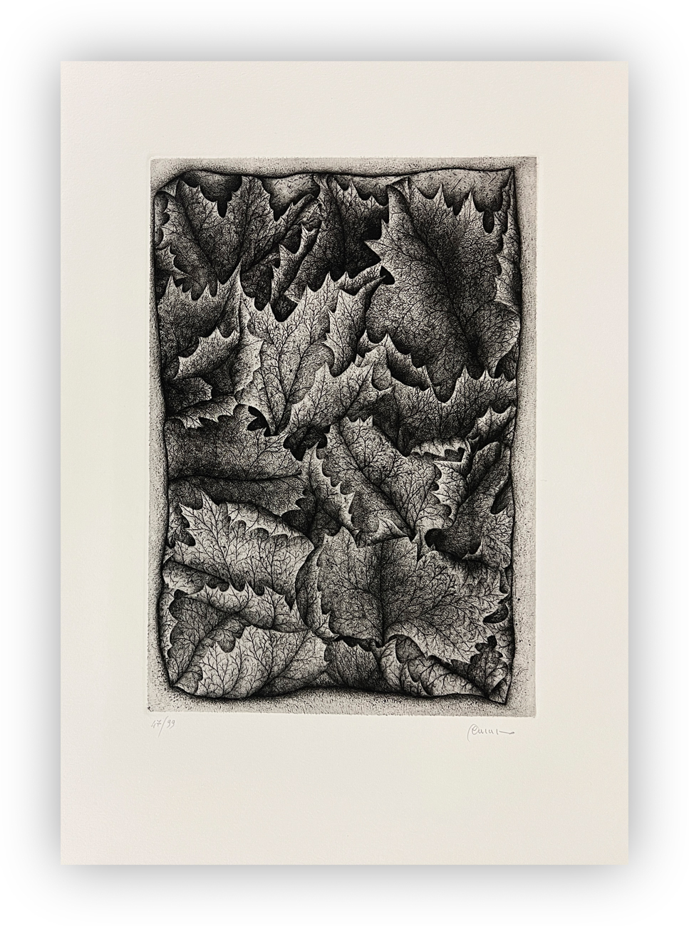 Edizione d'arte contenente una poesia di Eugenio de Signoribus illustrata da un'incisione di Pietro Paolo Tarasco recante firma, datazione e numerazione (Esemplare 47/99) a matita al fronte