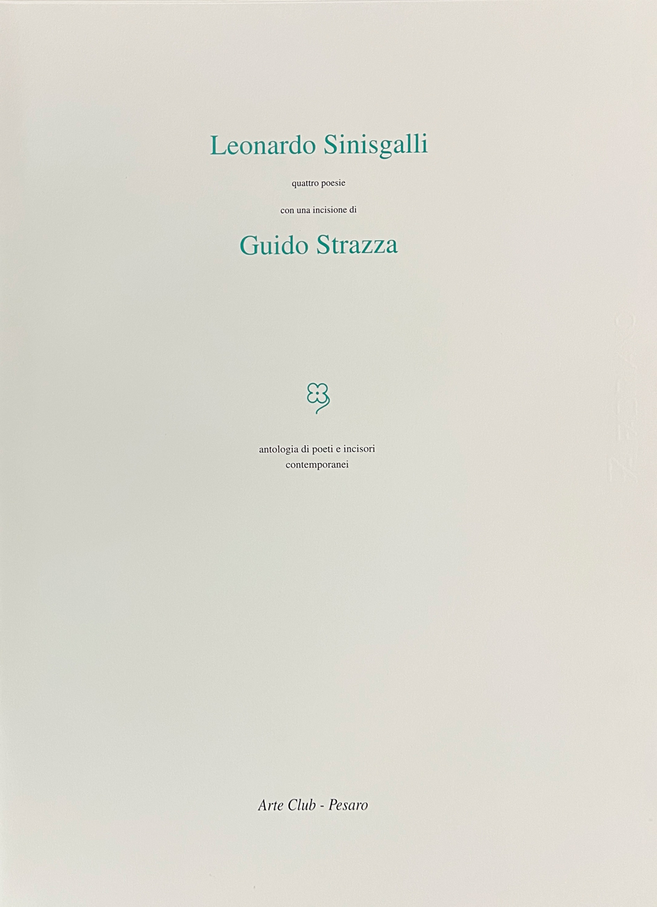 Edizione d'arte contenente 4 poesie di Leonardo Sinisgalli illustrate da un'incisione a puntasecca, bulino e rotella di Guido Strazza recante firma e numerazione (Esemplare 47/99) a matita al fronte e timbro a secco 'II Bulino - Roma'