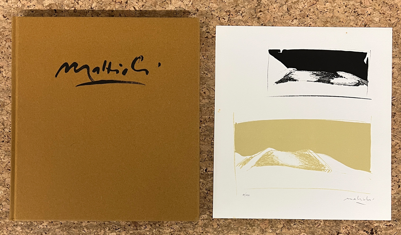 Il presente esemplare rientra nelle prime 200 copie ed è pertanto arricchito dalla presenza di una litografia di Carlo Mattioli recante firma e numerazione (Esemplare 11/100) a matita al fronte