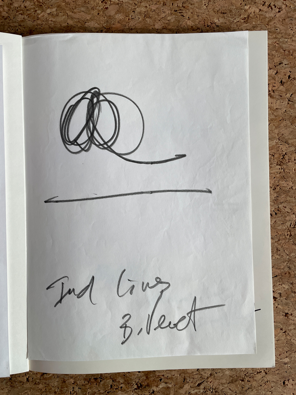 Reca disegno, firma e dedica dell'Artista a pennarello nero all'interno