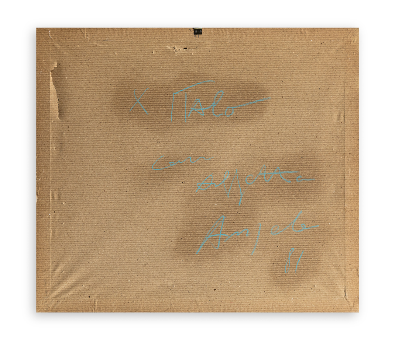 Firma e dedica ad personam datata 1981 al retro del cartoncino protettivo