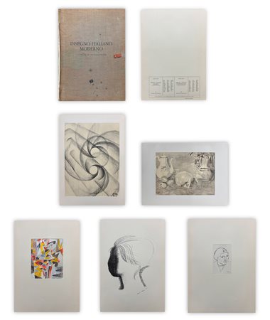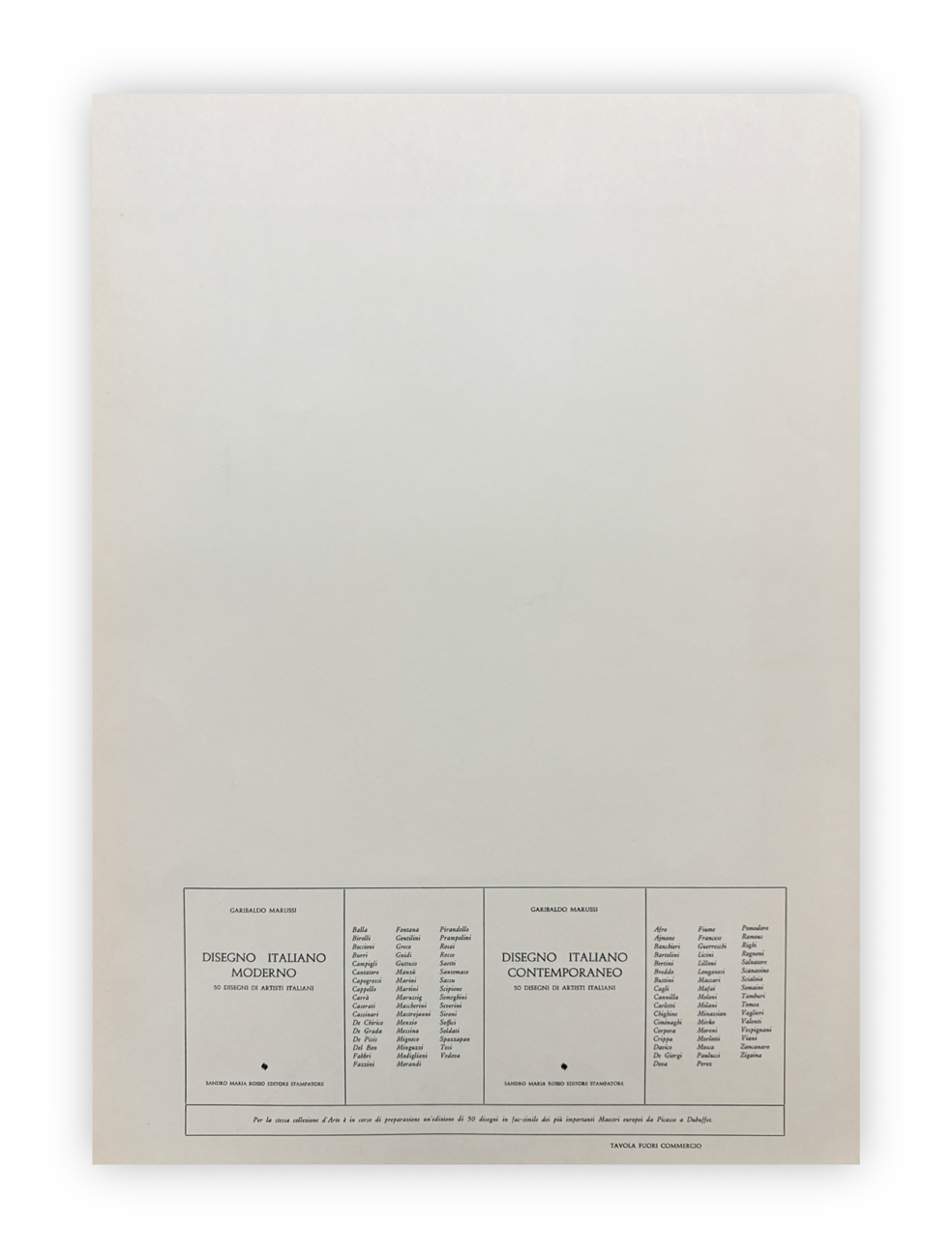 Imponente cofanetto contenente fascicolo di presentazione e riproduzioni sciolte di 50 disegni di artisti italiani (edizione a cura di Garibaldo Marussi)