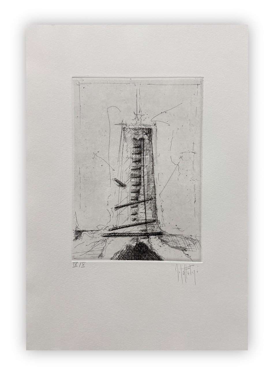 Cartella contenente 6 incisioni di Armando Fettolini, ciascuna recante firma e numerazione (Esemplare IX/X) a matita al fronte, ed un testo critico di Mauro Corradini