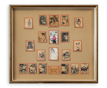 Lotto unico di 20 disegni a china e pastelli su carta, molti dei quali recanti firma a matita al fronte