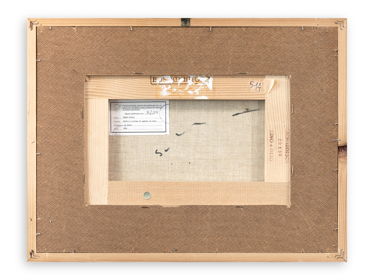 Etichetta dell'Archivio Generale dell'Opera Pittorica di Mario Schifano al retro