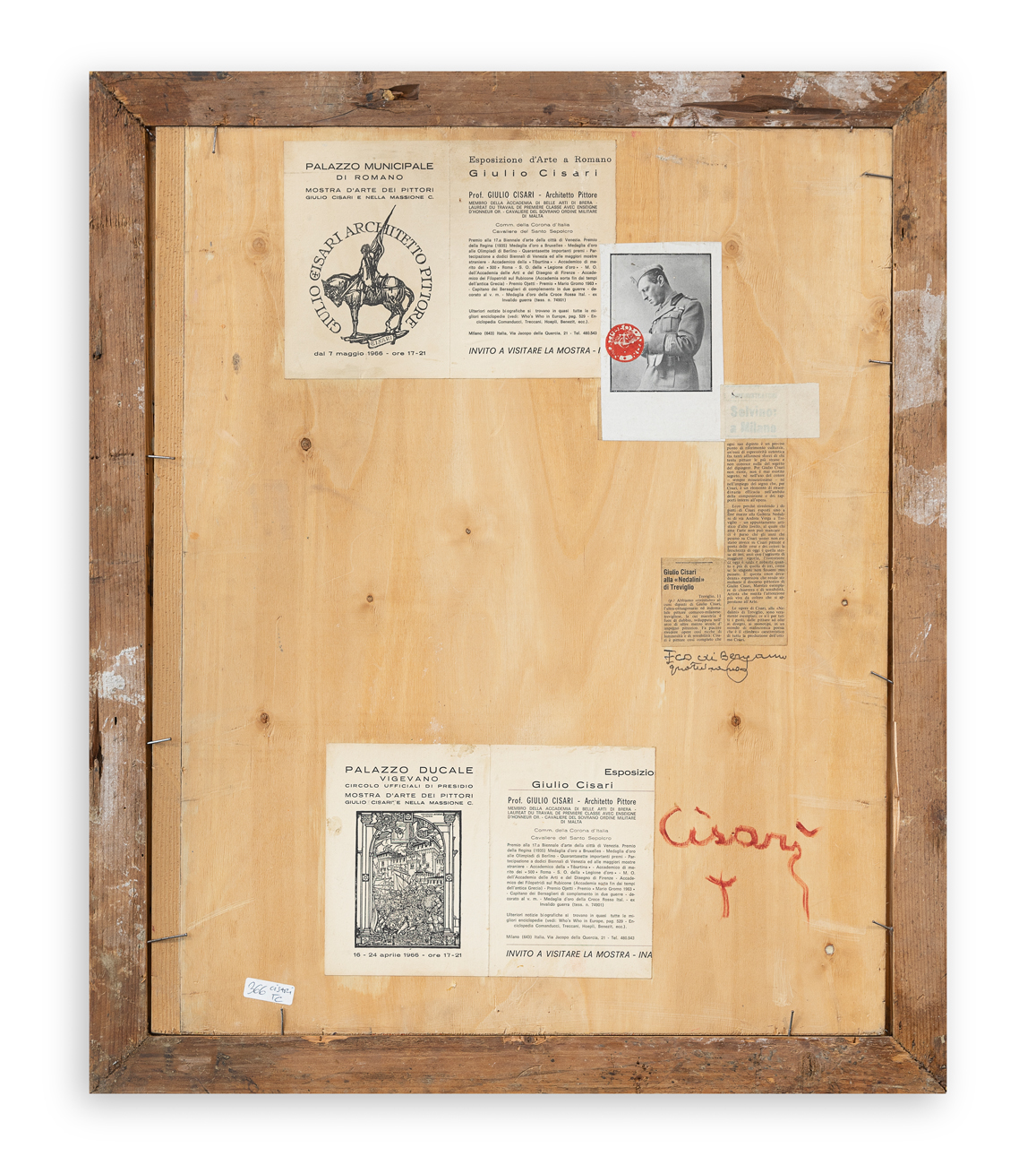 Etichette relative ad esposizioni dell'Artista al retro