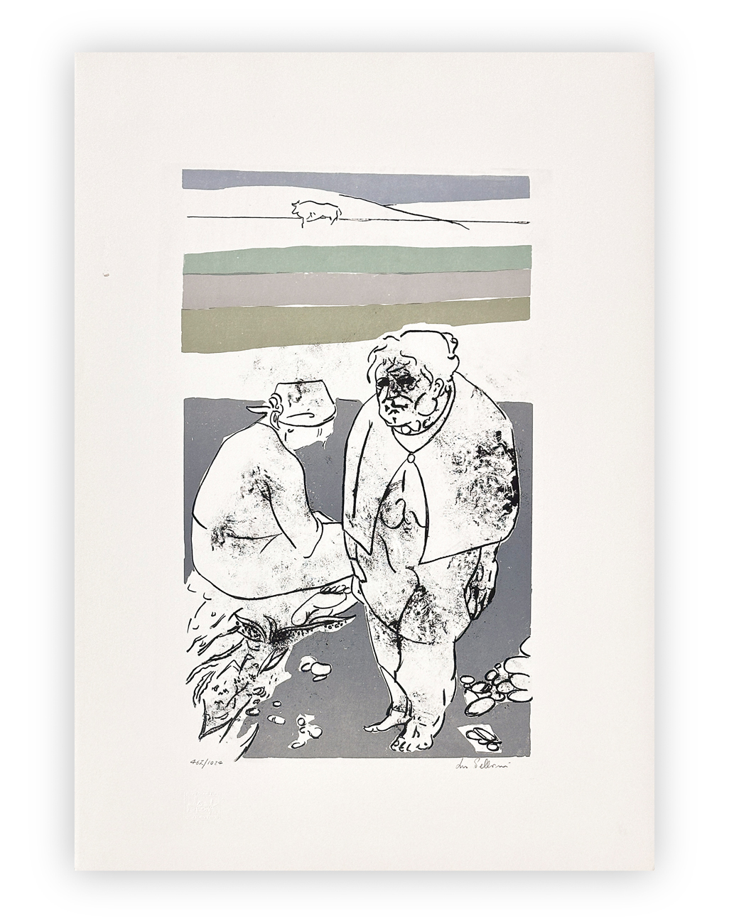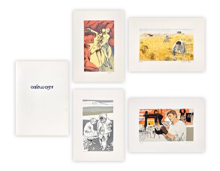 Cartella contenente testo di presentazione di Vittorio Orombello e litografie di Carlo Jacono, Leo Pellicanò, Lia Laterza Benini e Domenico Faro, ciascuna recante firma e numerazione a matita al fronte