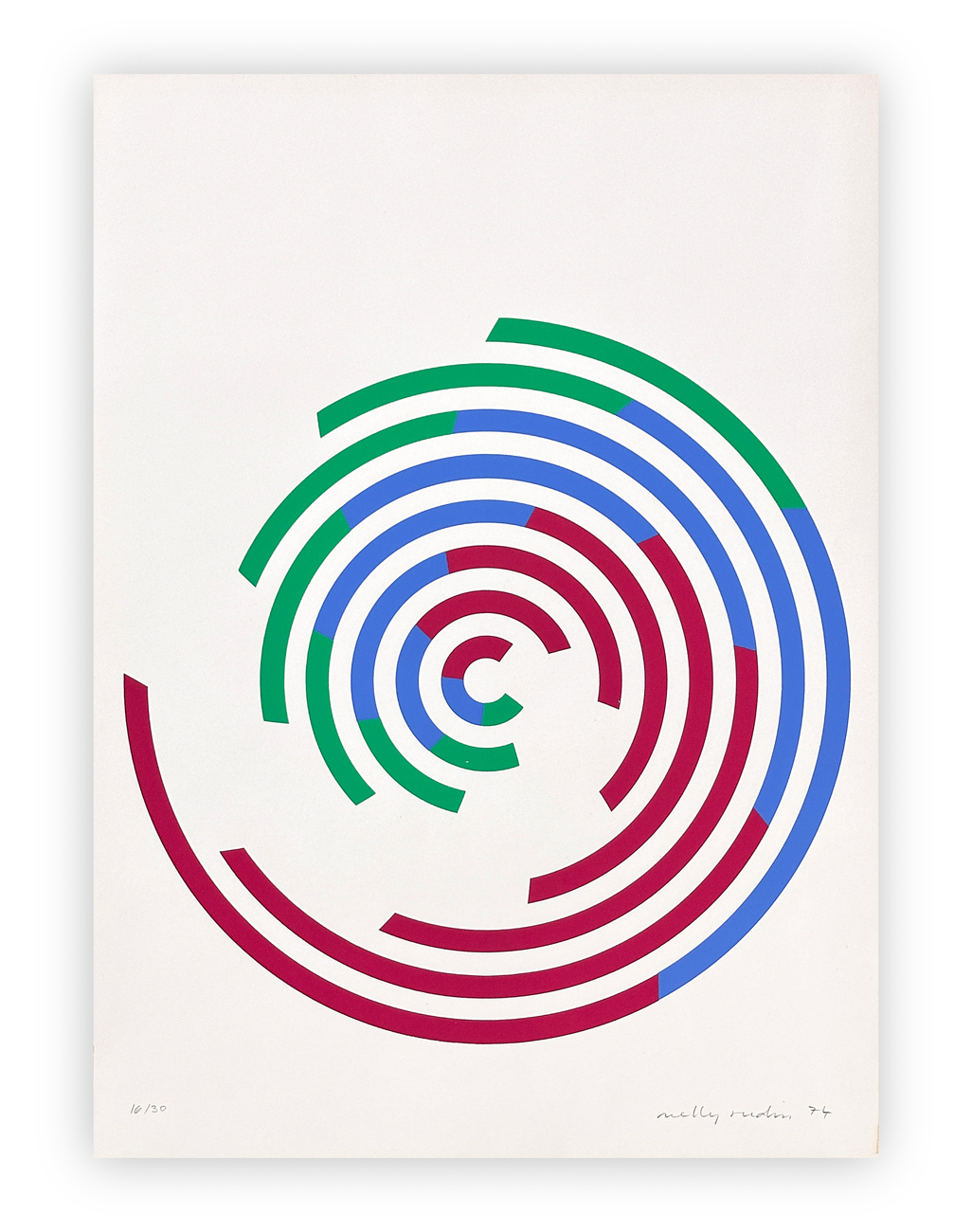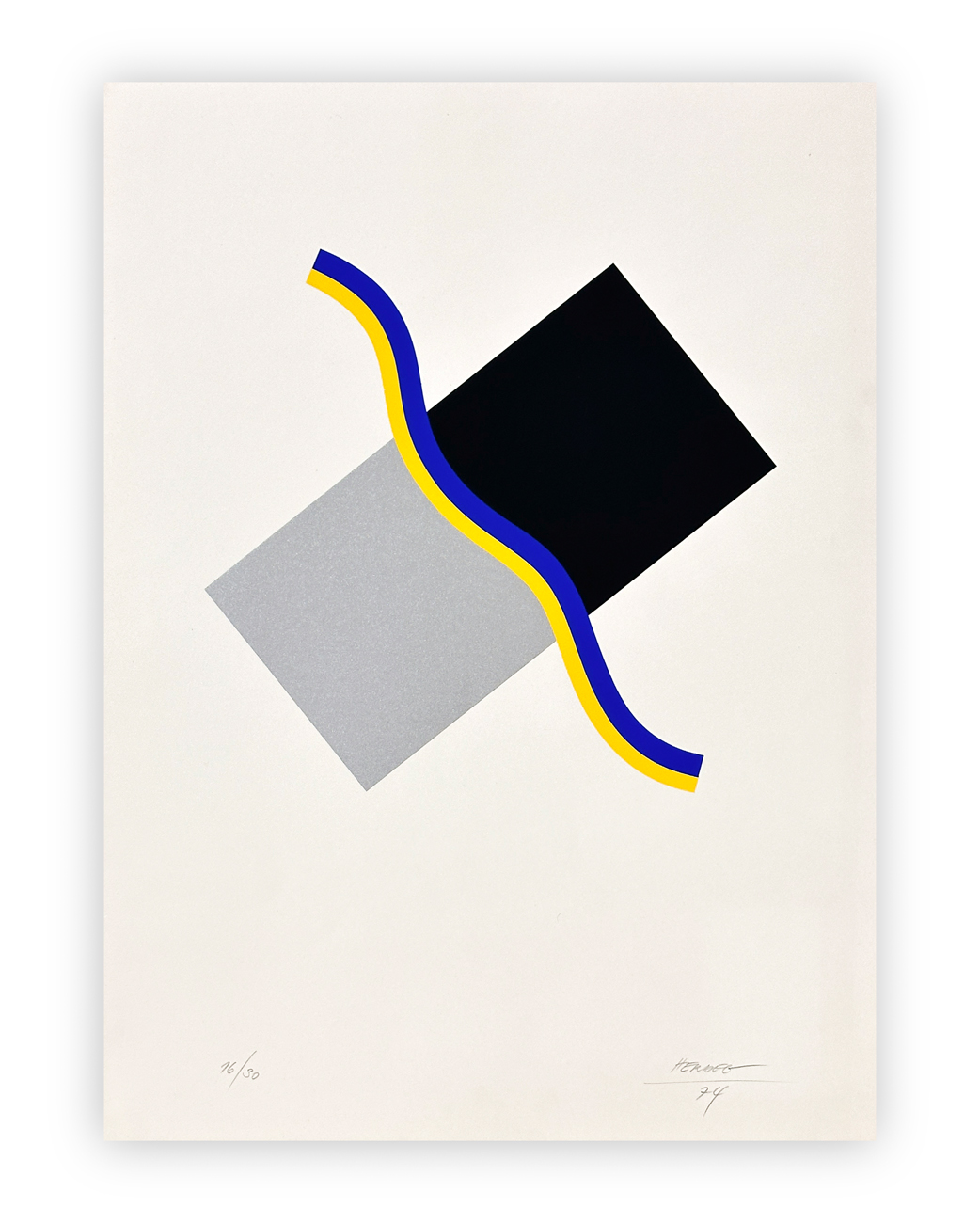 Cartella contenente 4 serigrafie di Reale Franco Frangi, Christian Herdeg, Lorenzo Piemonti e Nelly Rudin, ciascuna recante firma, datazione e numerazione (Esemplari 11/30) a matita al fronte ed etichetta di garanzia dello stampatore al retro