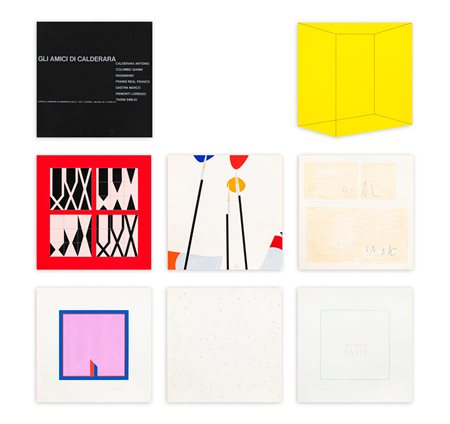 Cartella contenente 1 testo di Emilio Tadini e 7 serigrafie di Antonio Calderara, Gianni Colombo, Reale Franco Frangi, Marco Gastini, Lorenzo Piemonti ed Emilio Tadini ciascuna recante firma e numerazione (Esemplari 16/99) a matita