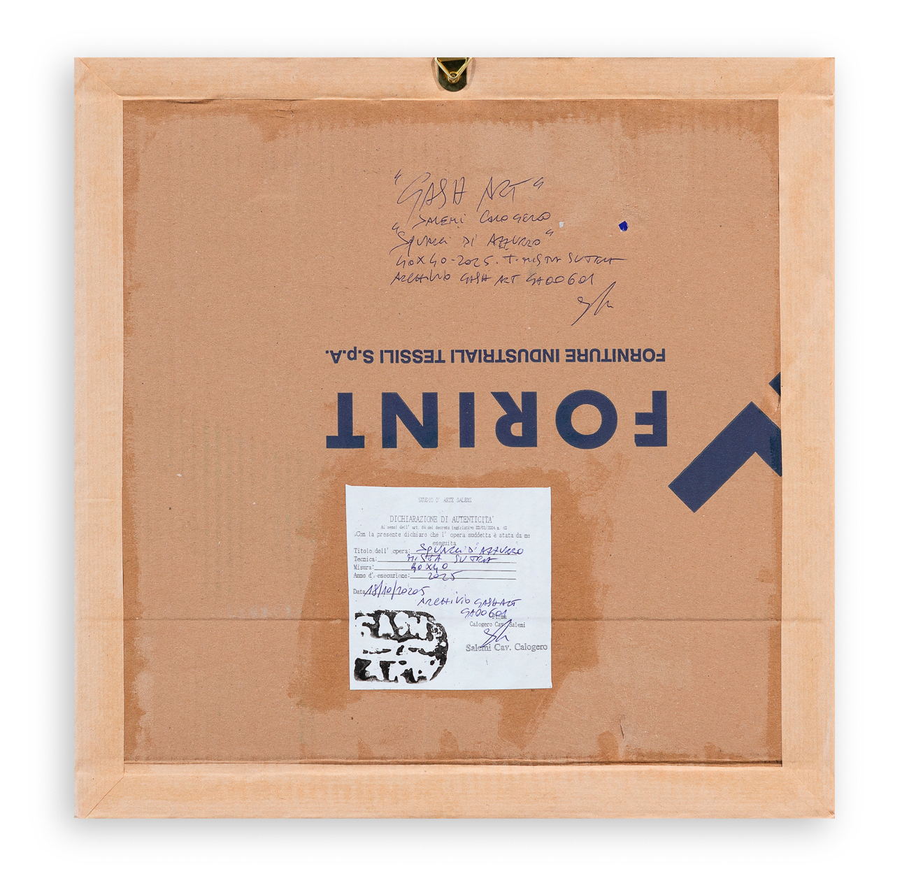 Etichetta dell'Artista al retro
