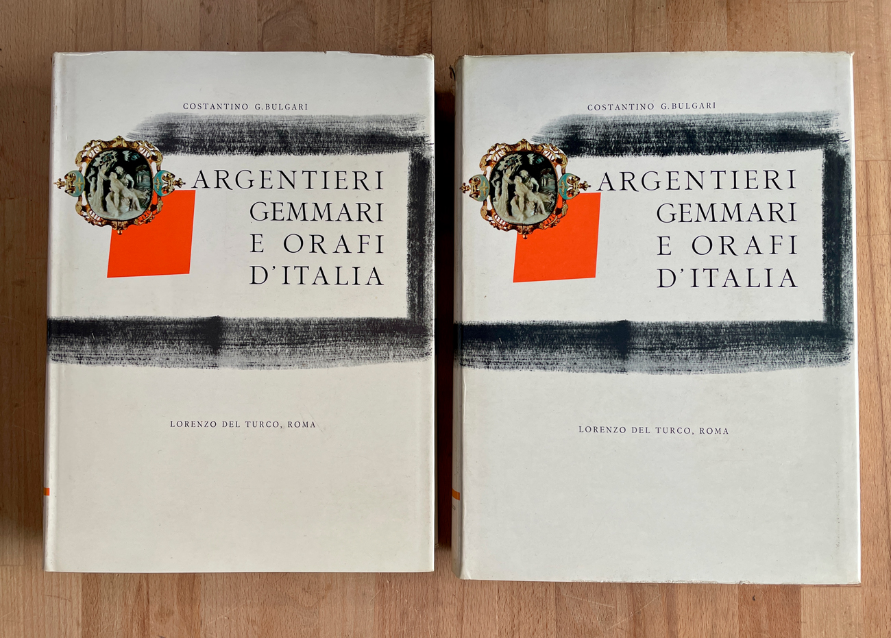 Cofanetto contenente due cataloghi riccamente illustrati a cura di Costantino G. Bulgari