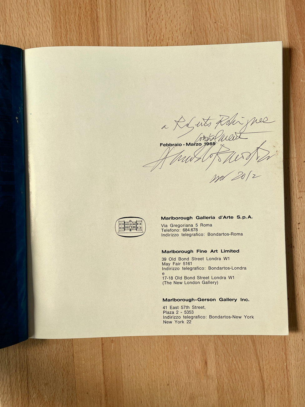 Catalogo riccamente illustrato edito in occasione dell'esposizione tenutasi presso Galleria Marlborough, Roma, 1965
