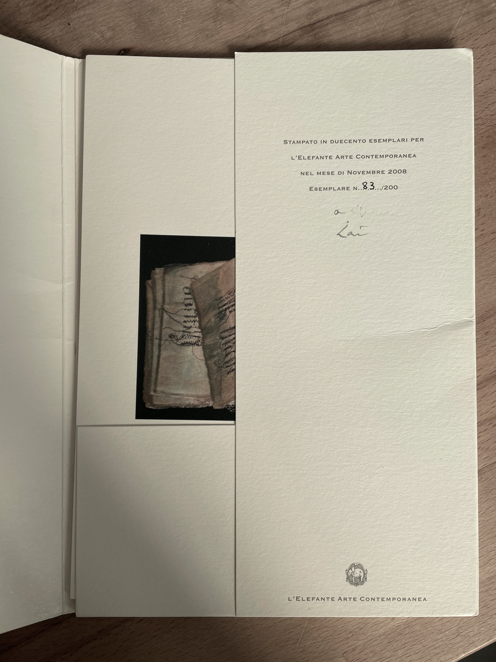 Edizione realizzata in 200 copie numerate per la Galleria l'Elefante Arte Contemporanea, Treviso