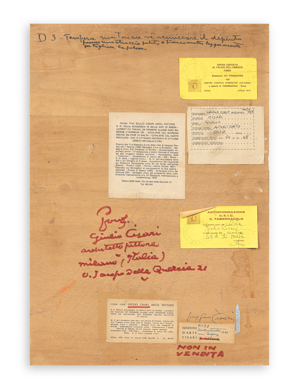 Firma, titolo, datazione ed etichetta dell'Artista al retro