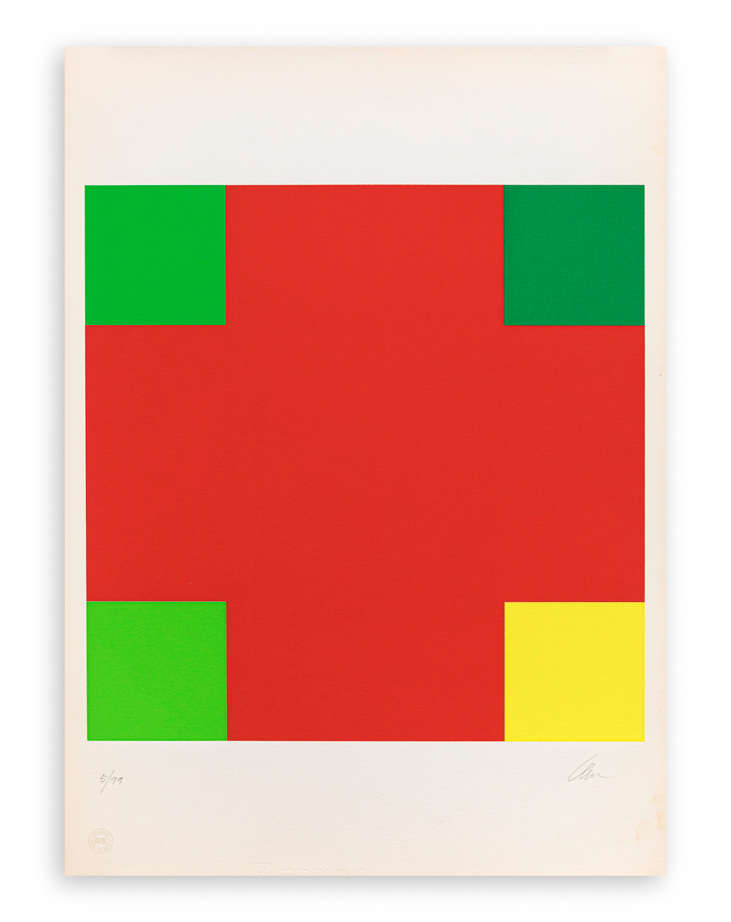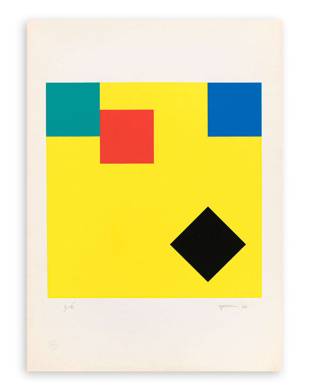 Cartella contenente 9 serigrafie di Jakob Bill, Antonio Calderara, Reale Franco Frangi, Camille Graeser, Christian Herdeg, Richard Paul Lohse, Lorenzo Piemonti, Nicola Sapone e Shizuko Yoshikawa ciascuna recante firma e numerazione (Esemplari 43/99)