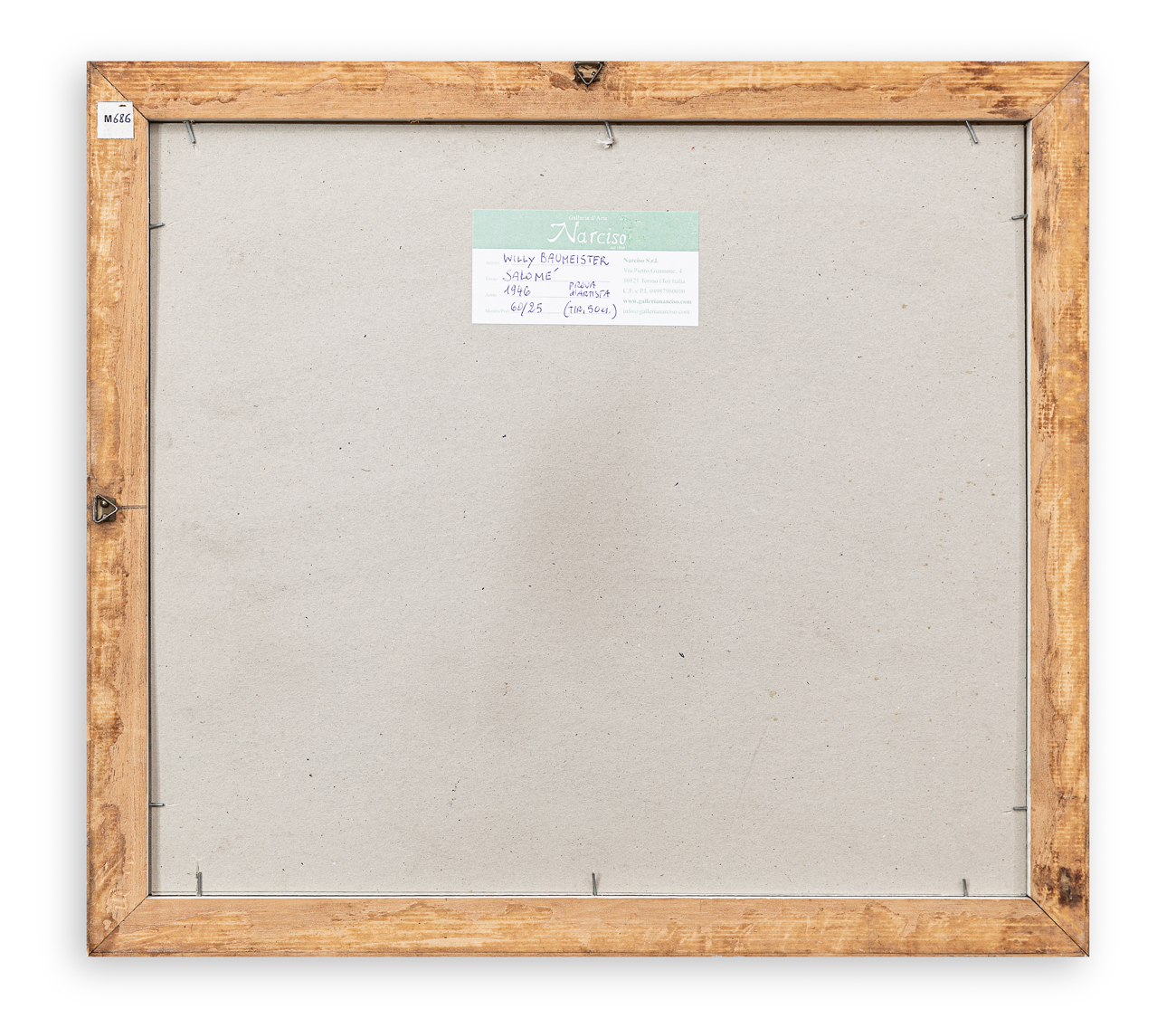 Etichetta della Galleria d'Arte Narciso (TO) al retro