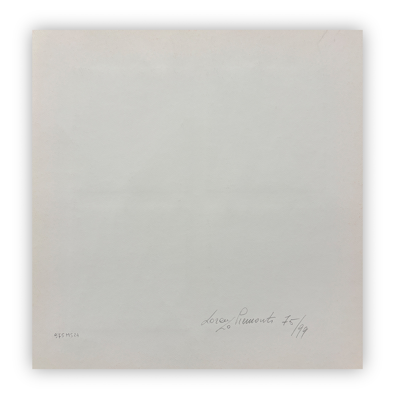 Firma e numerazione (Esemplare 75/99) a matita al retro