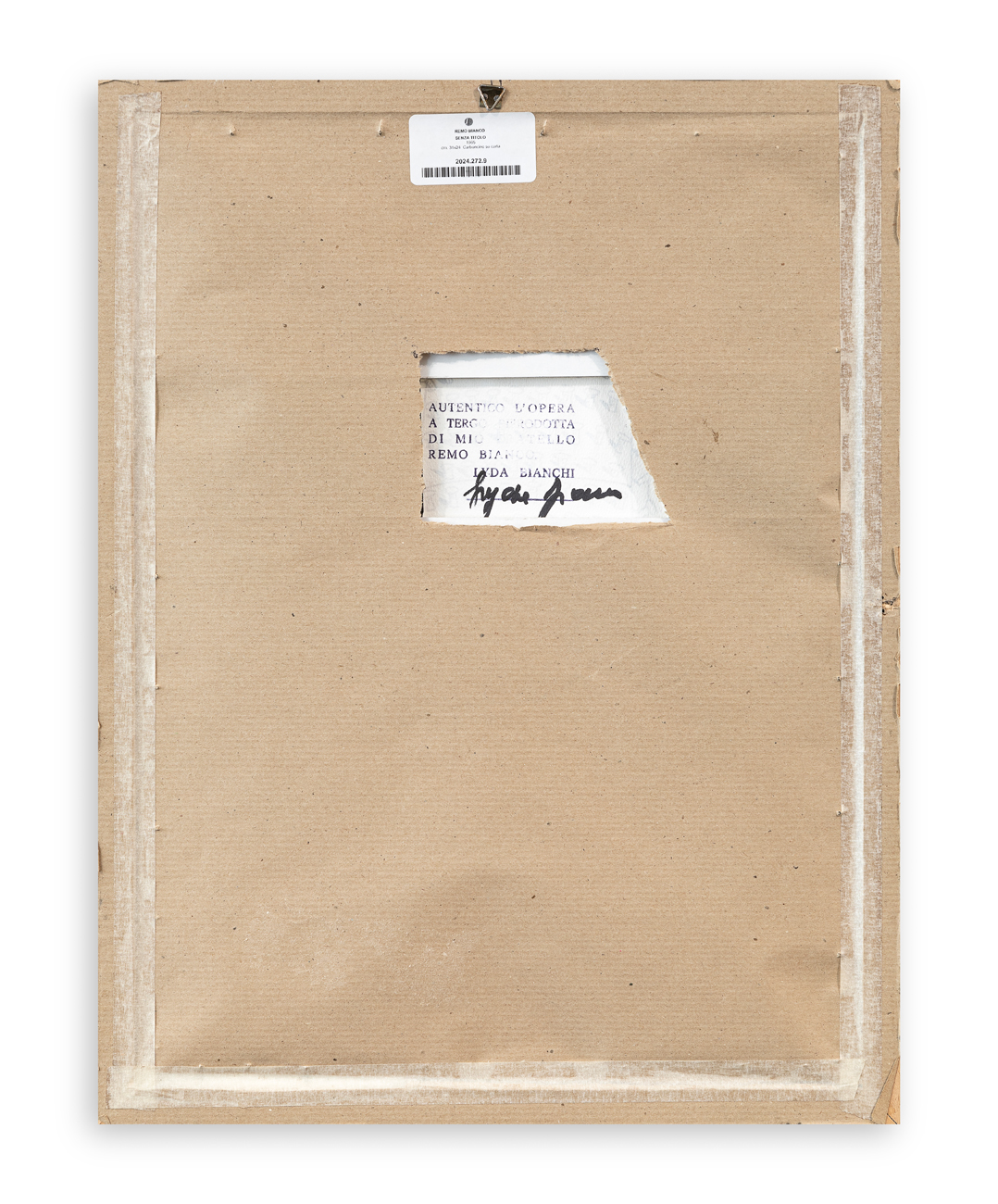 Cartiglio recante dichiarazione di autenticità a cura di Lyda Bianchi al retro