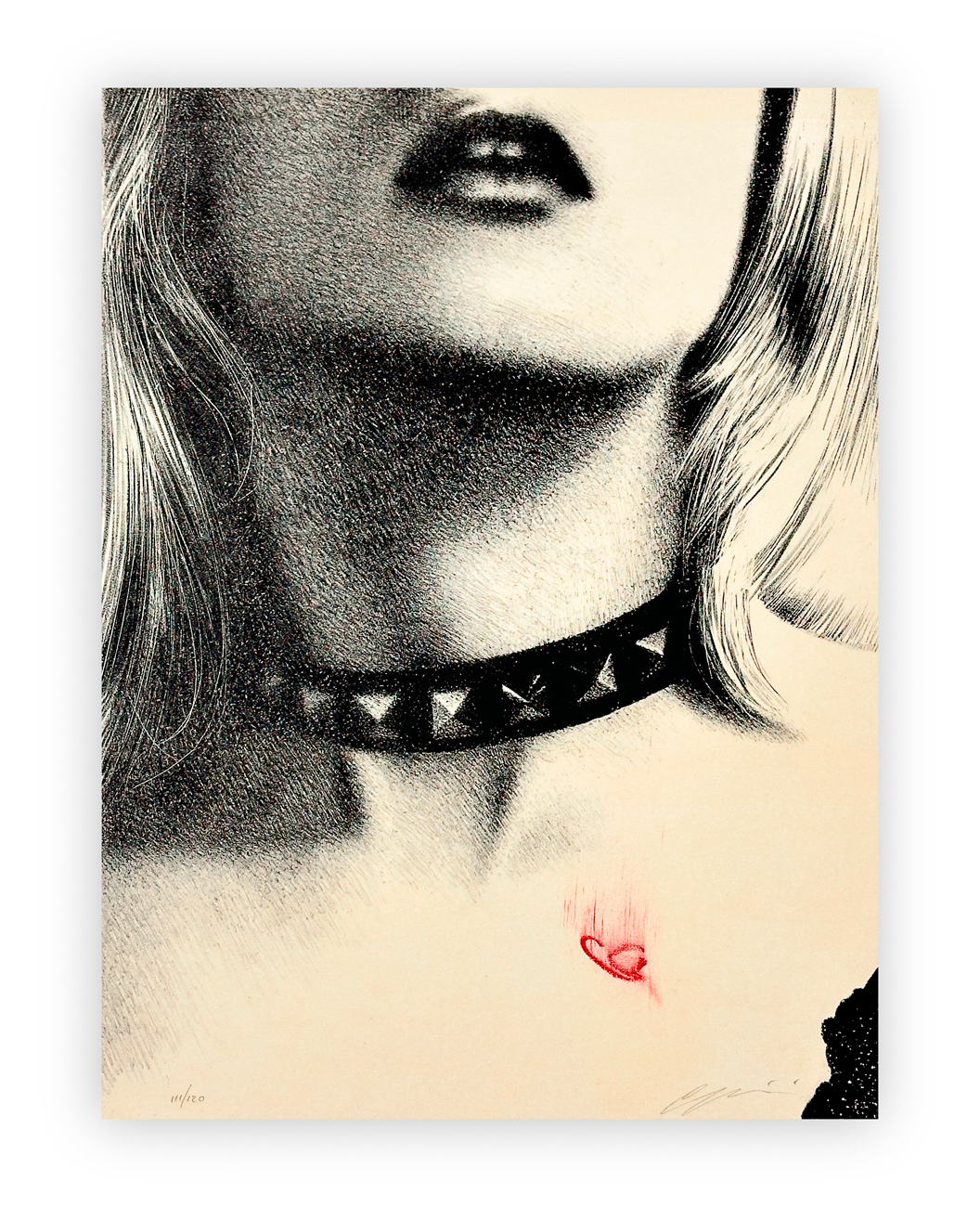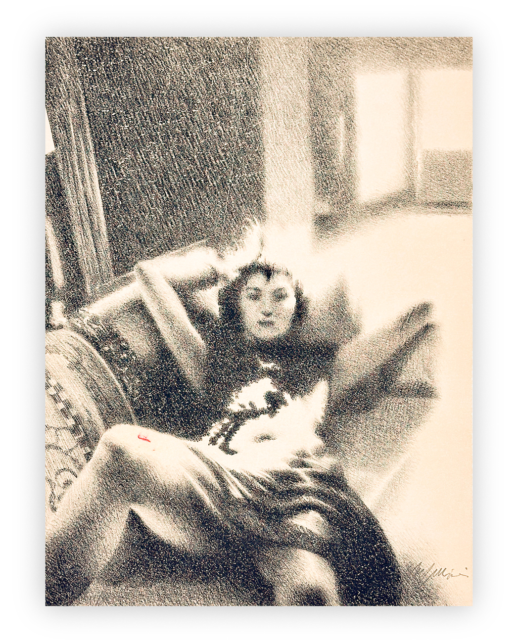 Cartella contenente testo di Giorgio Soavi e 10 litografie a 3 colori di Omar Galliani, ciascuna recante firma e numerazione (Esemplari 85/120) a matita al fronte