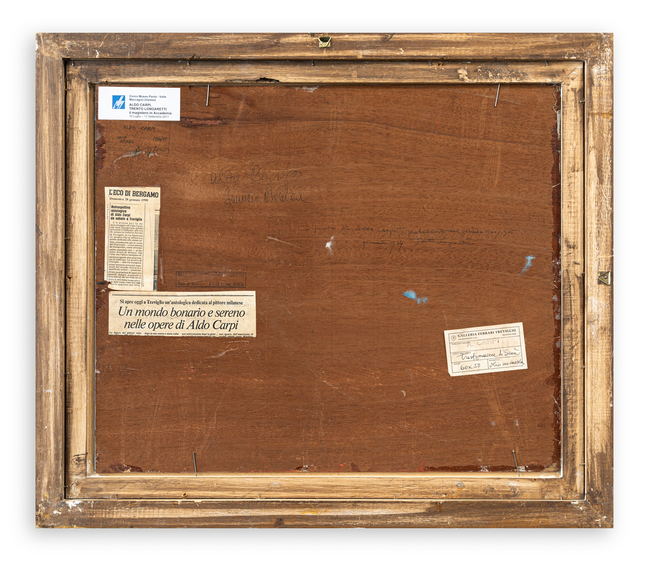 Etichetta dell'esposizione 'Aldo Carpi, Trento Longaretti - Il magistero in Accademia' al retro