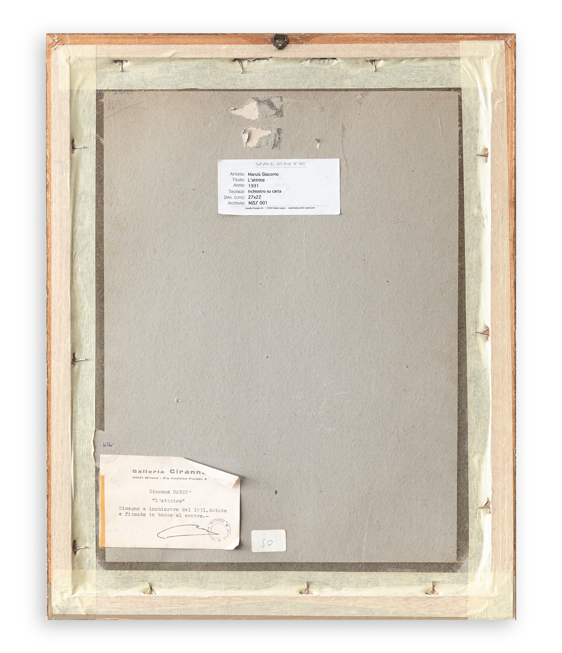 Etichetta e timbro della Galleria Ciranna (MI) al retro