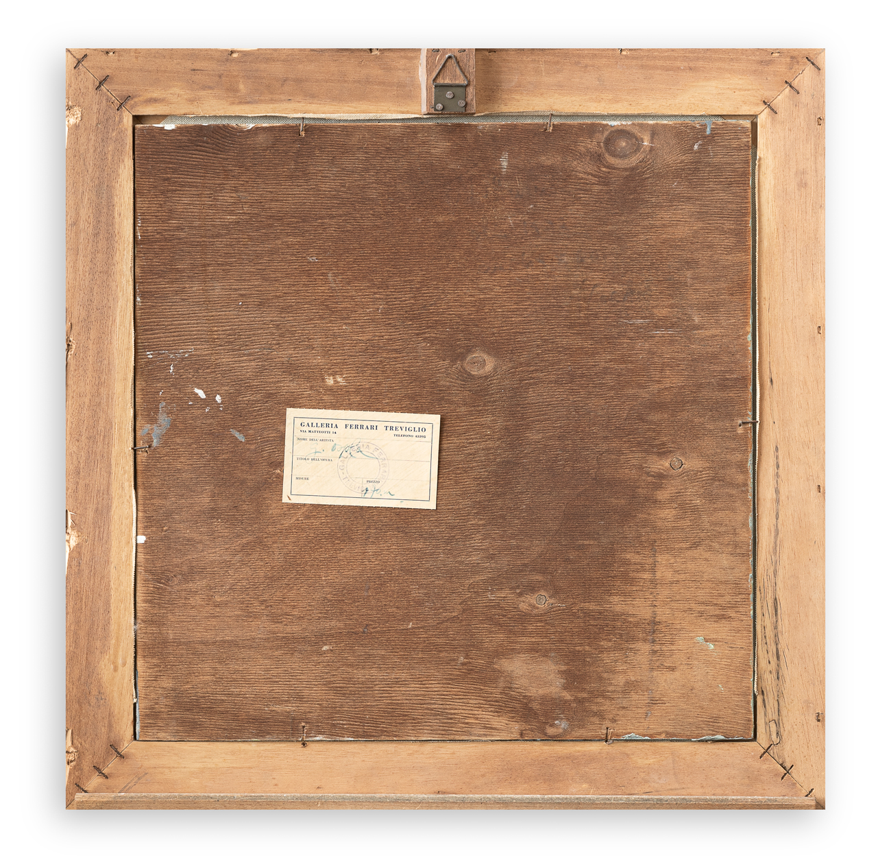Etichetta e timbro della Galleria Ferrari (BG) al retro