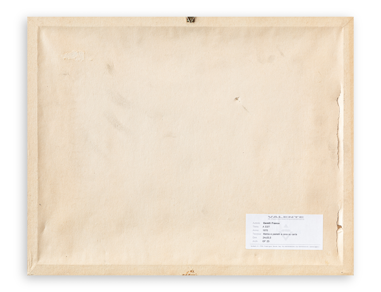 Etichetta della Galleria Valente Arte Contemporanea (SV) al retro del cartone protettivo