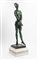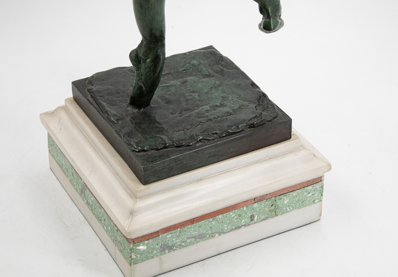 Scultura in bronzo a patina verde poggiante su base in marmo