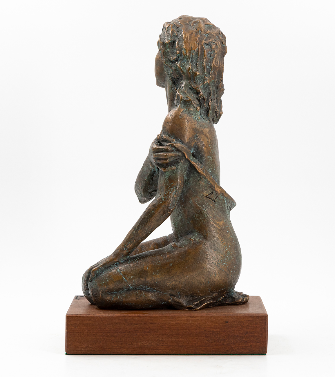Scultura in bronzo poggiante su base in legno