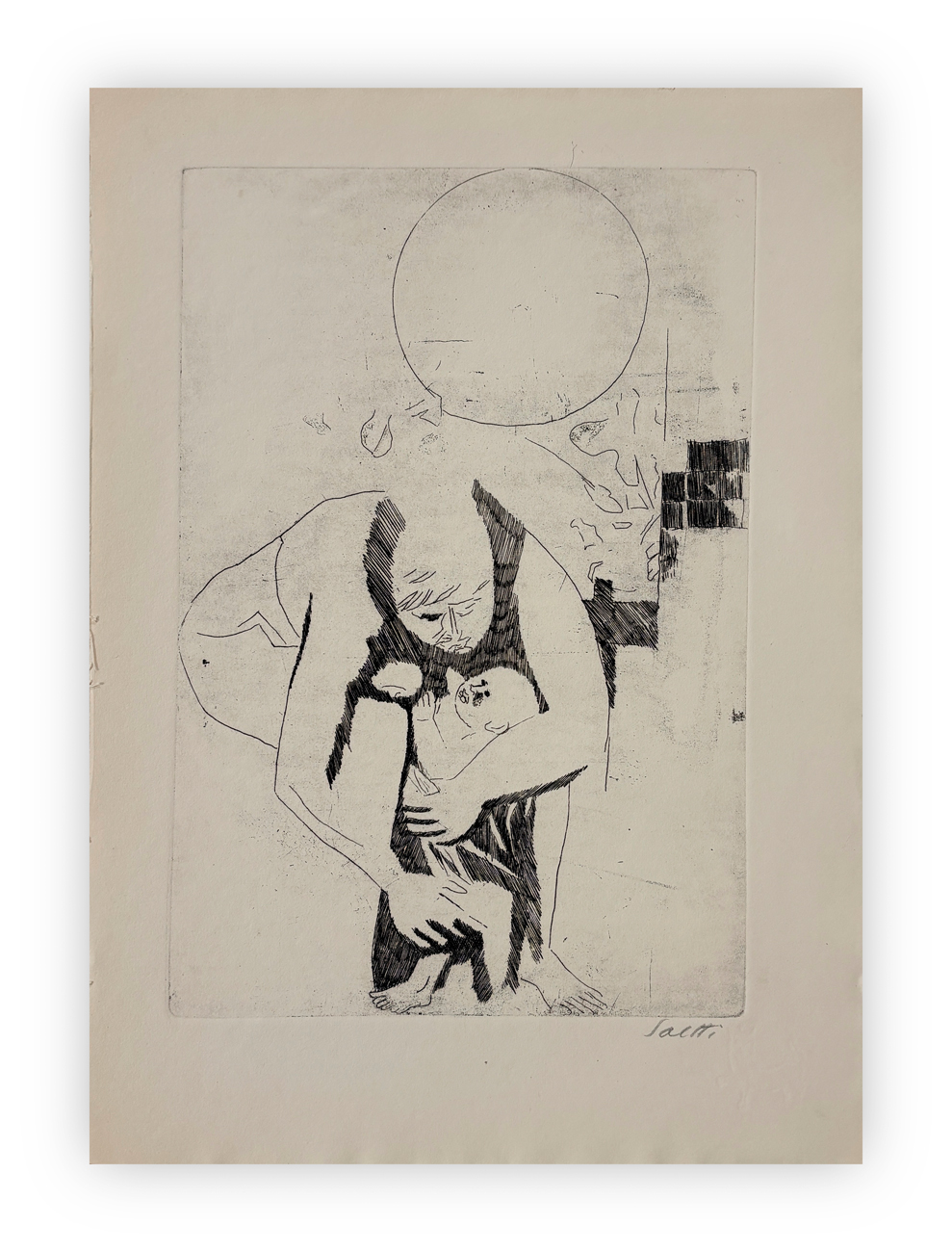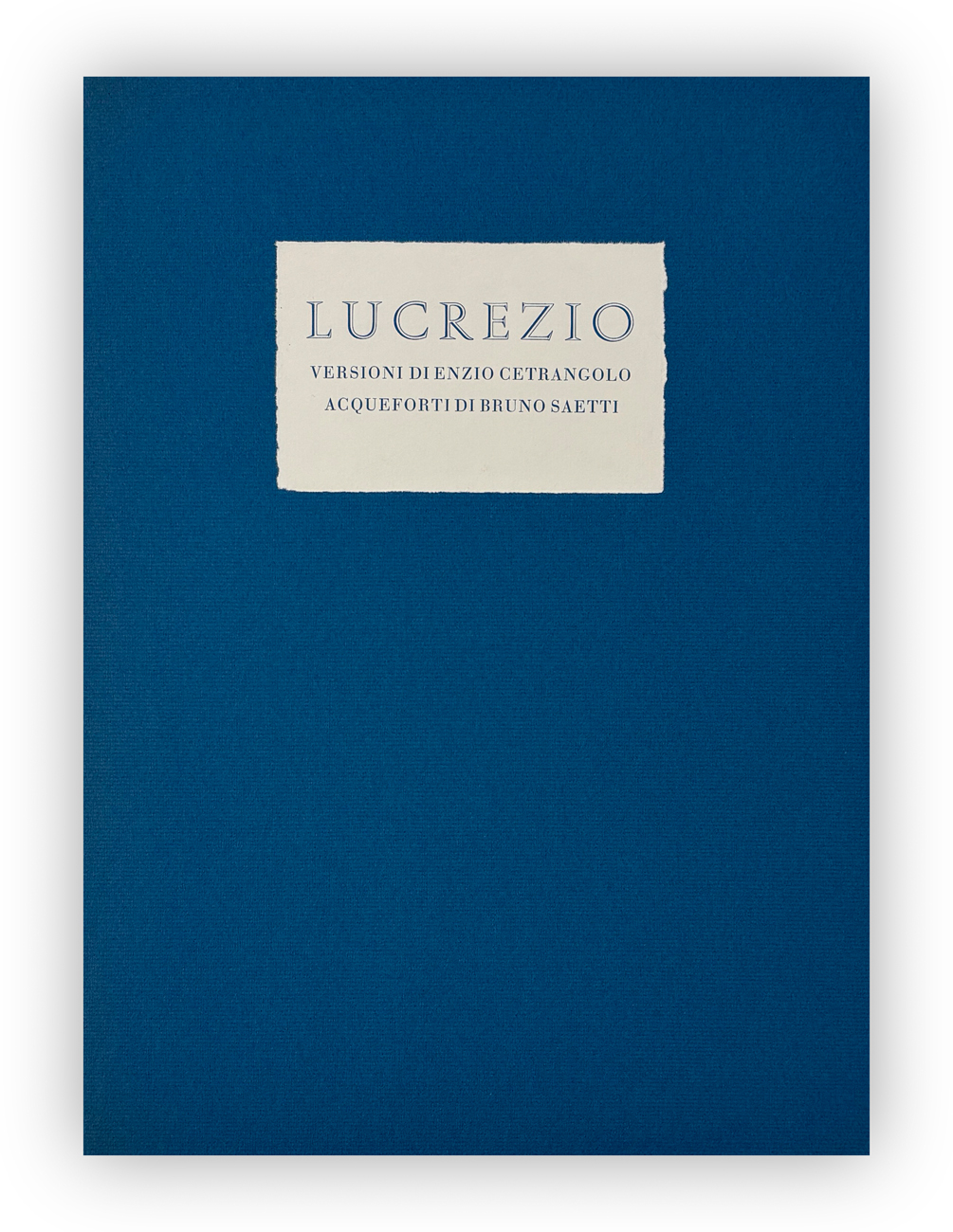Edizione d'arte recante testi di Lucrezio nelle versioni di Enzio Cetrangolo illustrati da una acquaforte di Bruno Saetti recante firma a matita al fronte