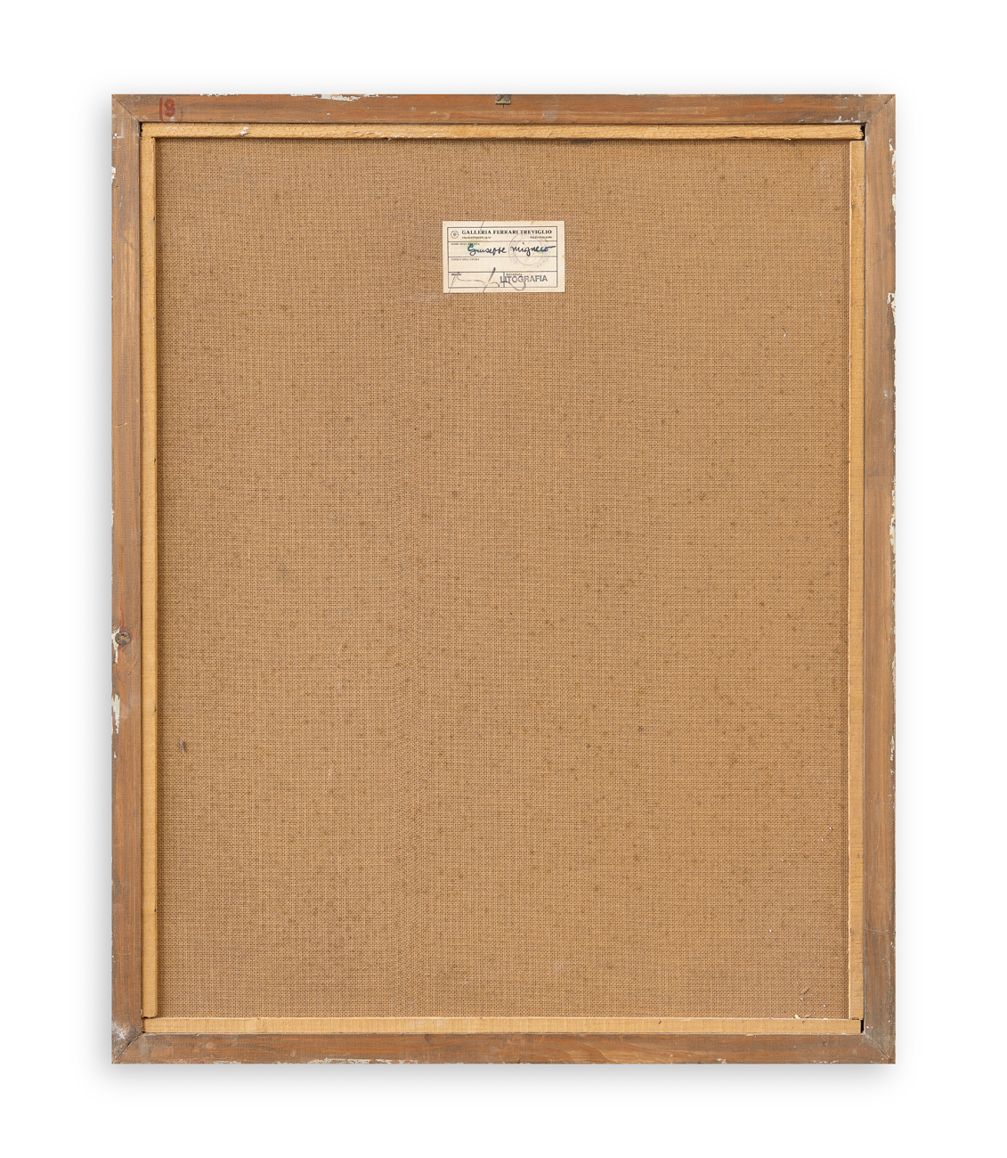 Etichetta della Galleria Ferrari (BG) al retro