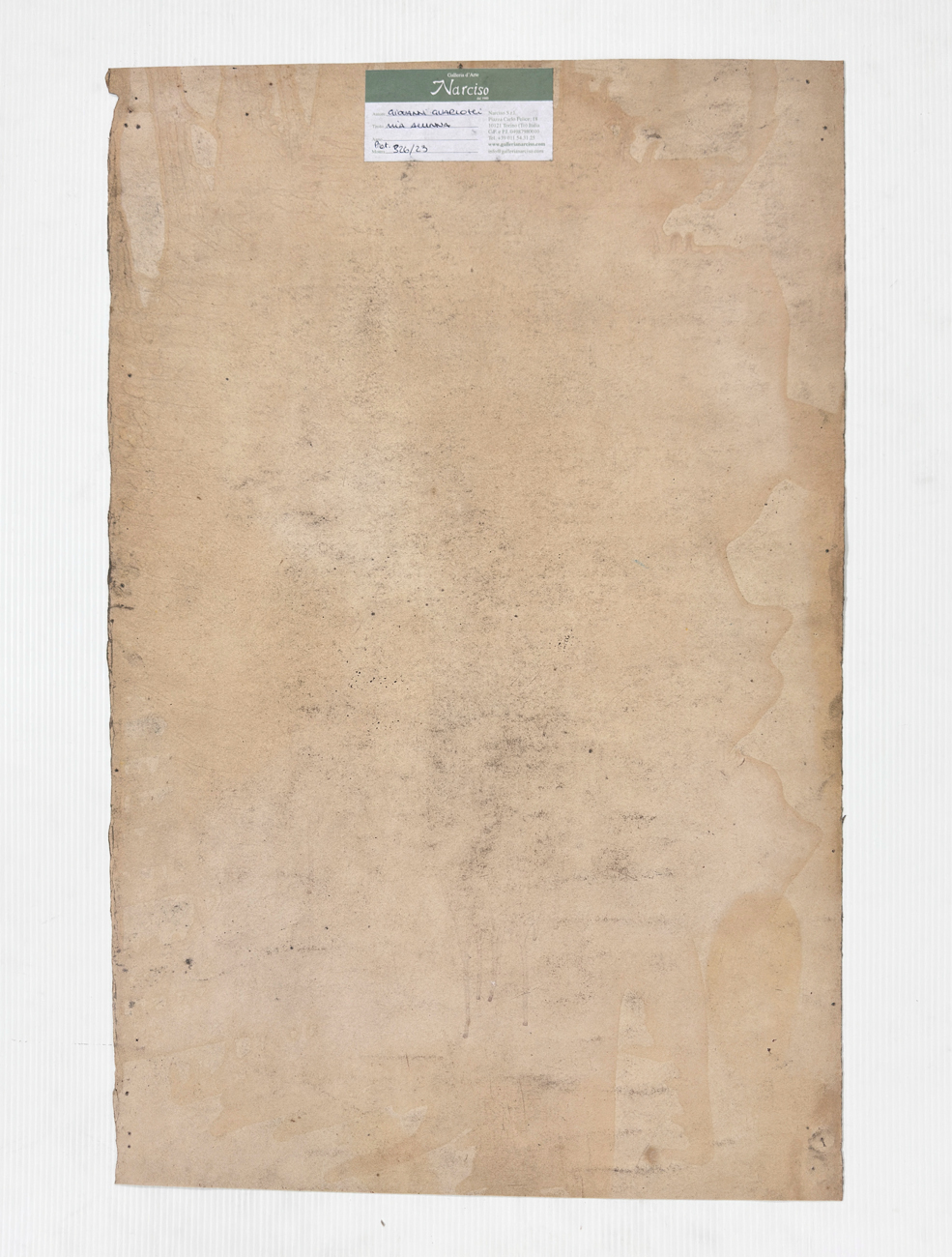 Etichetta della Galleria d'Arte Narciso (TO), con caratteristiche tecniche dell'opera e numero di repertorio, al retro