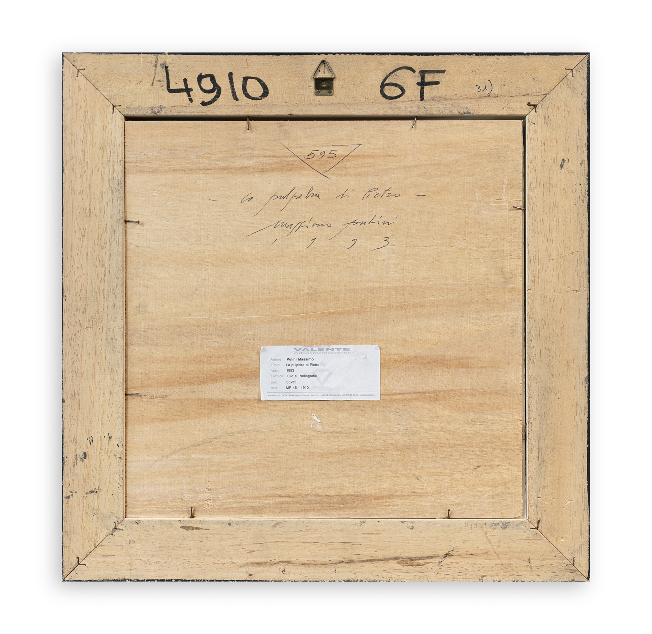 Etichetta della Galleria Valente Arte Contemporanea (SV) al retro