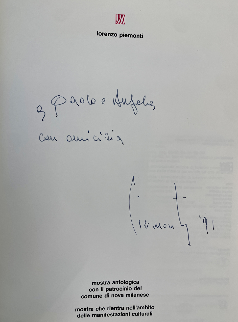 Catalogo riccamente illustrato, edito in occasione dell'esposizione antologica tenutasi presso Centro Amici dell'Arte, Nova Milanese, 1991